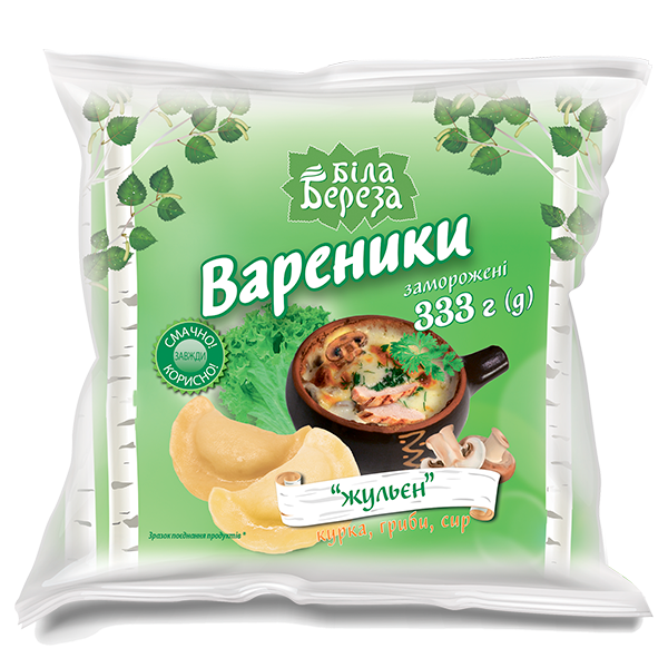 Ситні, ароматні, з начинкою, що нагадує знайомий смак домашнього жульєну, але без зайвого клопоту. Просто відварити — і смачний обід або вечеря вже на вашому столі.
